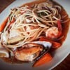 มากินร้านนี้เพราะพักที่รีสอร์ทของมีนา วิลล่า และขี้เกียจออกไปหาของกินข้างนอก เนื่องจากฝนตก ร้านตกแต่งสวย มีสไตล์ พนักงานบริการดี มีดนตรีสดให้ฟัง ร้านมีทั้งห้องแอร์และไม่มีแอร์ อาหารโดยรวมใช้ได้ ไม่ถึงกับอร่อย มีที่รู้สึกว่าดีก็เป็นแซลมอนซี๊ด มีความเผ็ดของรสน้ำราดซีฟู้ดผสมวาซาบิ พิซซ่าหน้าอร่อยแต่แป้งยังไม่โดน ที่ไม่ผ่านคือ สปาเก็ตตี้คาโบนาร่า รสชาติไม่อร่อย เนื้อสัมผัสไม่ได้ ปกติลูกชายชอบกินมาก...