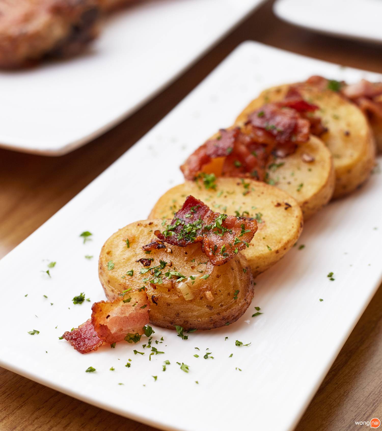 ทานพร้อมกับ Side Dish อย่าง “Confit Potato” (85 บาท) มันฝรั่ง Confit (เป็นการอบในมันเป็ดจนนุ่มได้ที่) แล้วก็ทอดซ้ำในมันเป็ดจนข้างนอกกรอบ รสชาติเข้มข้น