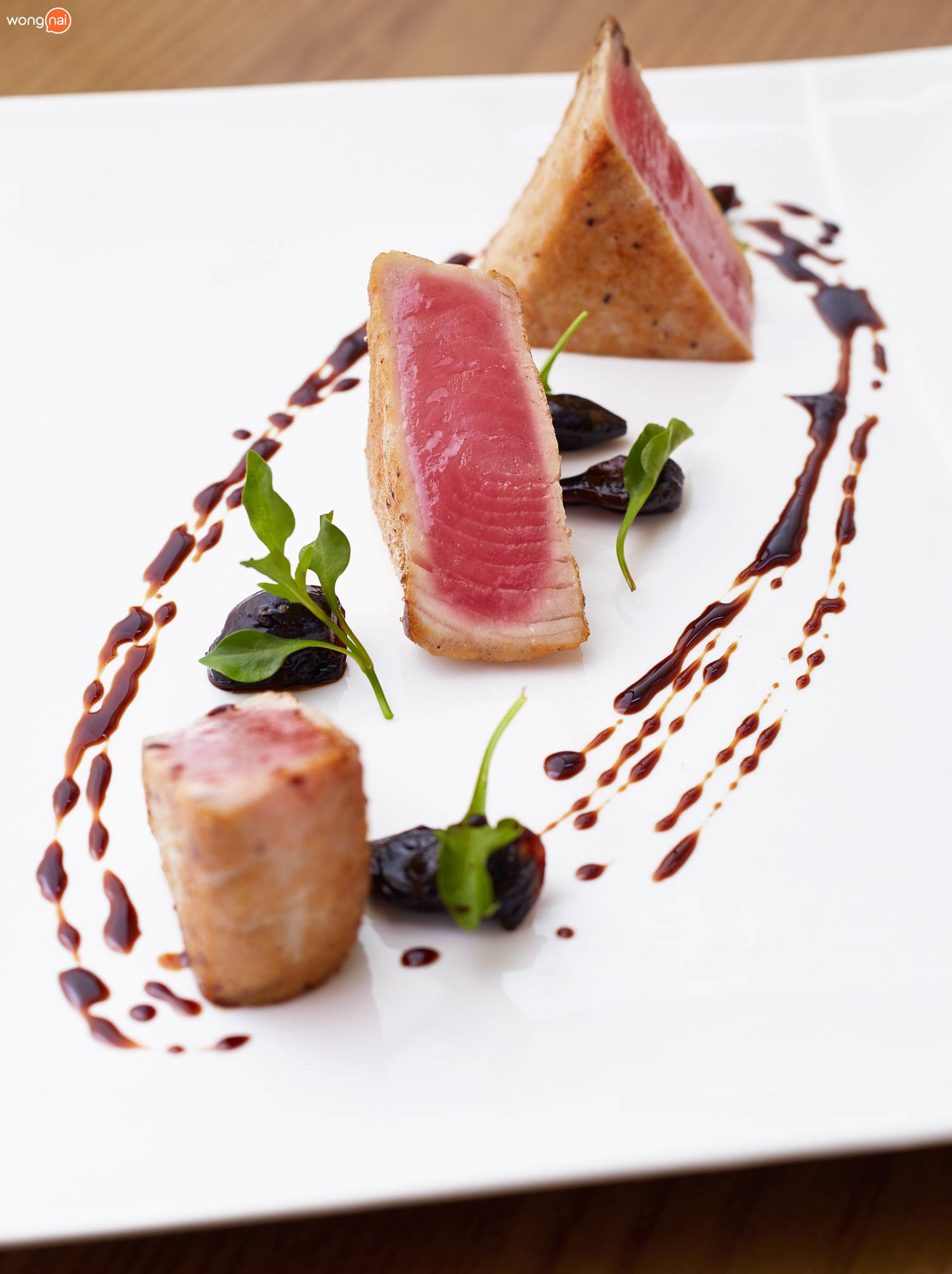 “Saku Tuna” (495 บาท) เป็นเมนคอร์สสุดเฮลตี้ที่ใช้เนื้อปลาทูน่าอย่างดี ย่างบนกระทะจนผิวข้างนอกสุกเกรียมกำลังหอมข้างในยังคงความเป็นซาชิมิไว้อยู่ เสิร์ฟพร้อมกับ Balsamic Reduction และ หอมแดงตุ๋น เพื่ออรรถรสที่ดีงาม!