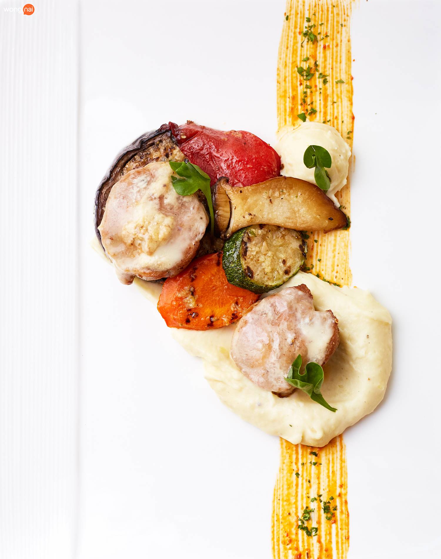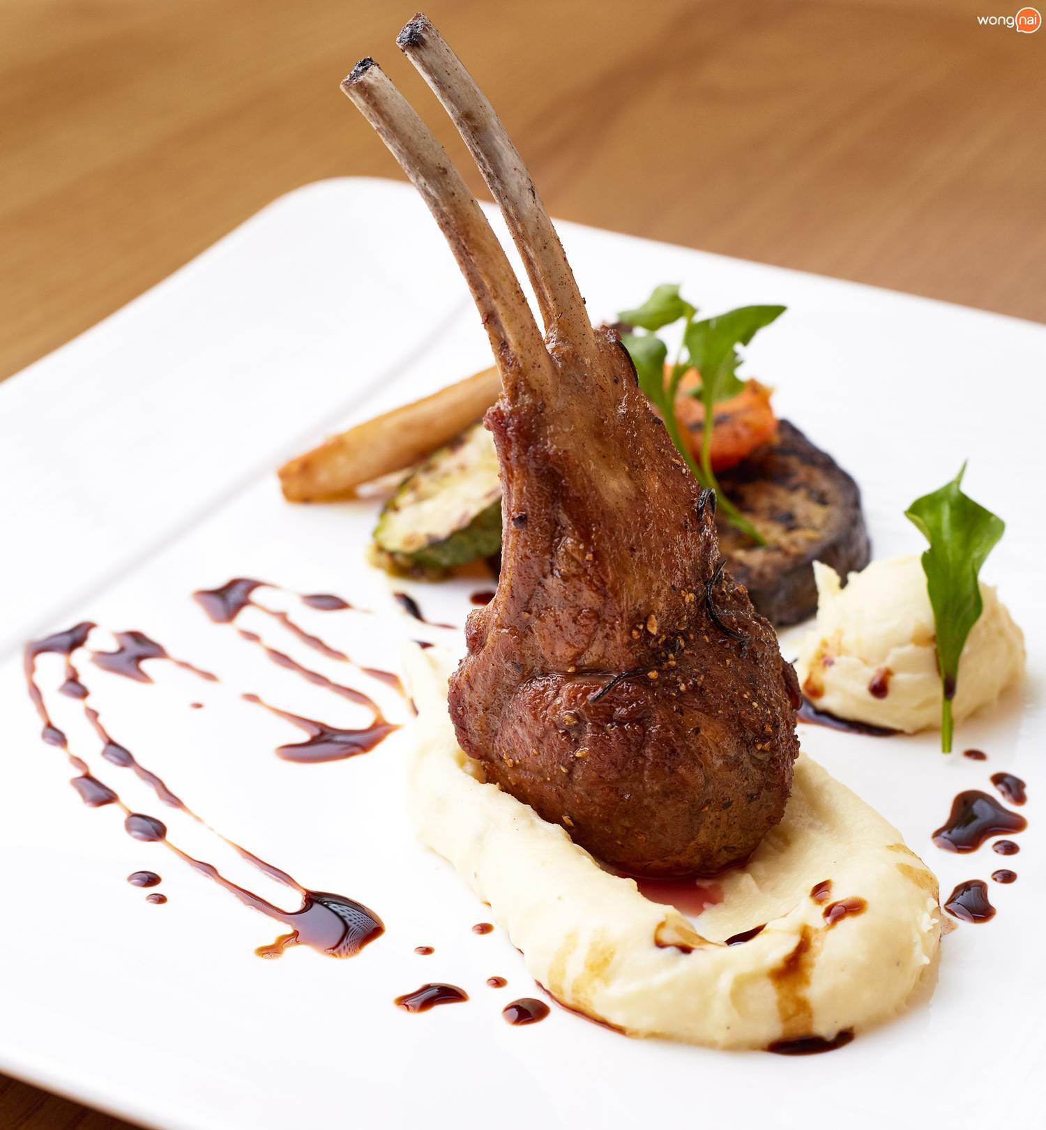 Main Course เลือกได้ระหว่าง “Pan-seared pork medallion” เสิร์ฟพร้อมชีส Taleggio, ผักย่างรวมมิตร และ มันบด หรือ “New Zealand rack of lamb” เสิร์ฟพร้อม หัวหอมยุโรปตุ๋นใน Balsamic Reduction, ผักย่างรวมมิตร และ มันบด ทางเชฟรับประกันว่าไม่มีกลิ่นคาวเพราะใช้เนื้อแกะสดๆ มาทำ