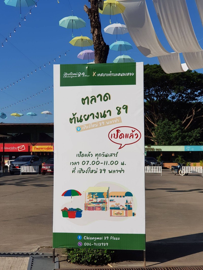 'ตลาดต้นยางนา 89' ตลาดนัดเล็กๆ เพิ่งเปิดใหม่ทุกเช้าวันเสาร์ 07.00-11.00 น. อยู่ในคอมมูนิตี้มอลล์เชียงใหม่ 89 พลาซ่า (หนองหอย ถนนเชียงใหม่-ลำพูน) มีที่จอดรถสะดวก สถานที่กว้างขวางเดินสบาย มีร้านจำหน่ายอาหารพื้นเมือง อาหารสุขภาพ ขนม ผัก ผลไม้ ต้นไม้ เสื้อผ้าและงานฝีมือ ฯลฯ แวะมารับประทานอาหารเช้าที่นี่ แล้วเดินเล่นจับจ่ายซื้อของกันเพลินๆนะคะดูเพิ่มเติม