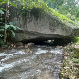 วันนี้จะมาแนะนำ สถานที่ท่องเที่ยวก่อนถึง แม่กำปอง ที่มีที่ก่อนรถสะดวก ที่แห่งนี้ มีลักษณะเป็นลำธาร ไหลผ่านหินก้อนใหญ่มาก ที่วางขวางลำธารอยู่ ทำให้น้ำไหลผ่านด้านล่างของก้อนหิน กลายเป็นไหลลอดผ่านก้อนหิน ตามชื่อเรียกเลย เดินจากจุดจอดรถ 50 เมตร เองครับ มาเที่ยวชมกันได้ดูเพิ่มเติม