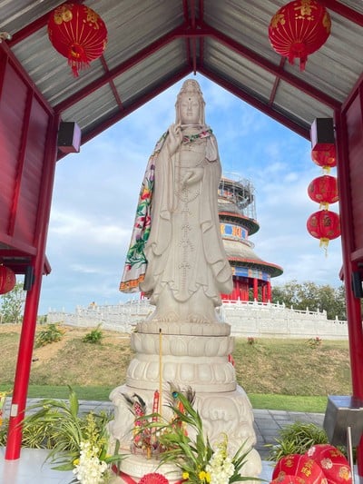 วิหารเจ้าแม่กวนอิม อี่ ทง เทียน ไท้ อยู่ที่สวนอุตสาหกรรมสหพัฒน์ กบินทร์บุรี อยู่ตรงด้านหน้าทางเข้านี่เอง มอจากถนนใหญ่สาย 33 ก็มองเห็นขัดนะ เจ้าแม่กวนอิมสร้างด้วยหินสีขาว ไปช่วงตอนเช้าอากาศค่อนข้างดี ลมโกรก เย็นสบายดีเลย เห็นแบ้วอยากนั่งพักนานๆเหมือนกัน ตัววิหารเองกำลังก่อสร้างยังไม่แล้วเสร็จดี จริงๆรู้จักที่นี่ได้ก็เพราะหน้าโฆษณานเฟสยุคแหละ ที่ขึ้นมาเชิญชวนร่วมทำบุญสร้างวิหาร โดยบริจาคไปที่บั...อ่านต่อ