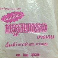 ขนมเปี๊ยะครูสมทรง (บางเลน) วันนี้มาทำธุระที่อำเภอบางเลน เลยตั้งใจมาที่ร้านจริงๆซักครั้ง ปกติซื้อทานตามร้านที่นำไปจำหน่าย ซึ่งมีอยู่ทั่วไปตามร้านขายของฝากใหญ่ๆเพราะขนมร้านครูสมทรงมีชื่อเสียงเป็นที่รู้จักกันดี ขนมเปี๊ยะลูกเล็กๆ แป้งบางไส้เยอะอร่อยๆชอบเอาไปทานคู่กับกาแฟบ้าง,น้ำชาบ้าง นอกจากขนมเปี๊ยะที่ดังแล้วยังมี ทองม้วนและกะหรี่ปั๊บที่มีความนิยมรองๆลงมา ใครยังไม่เคยทานลองหามาชิมดูนะอร่อยดี ไ...
