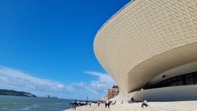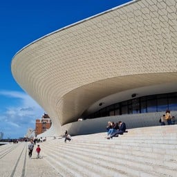 MAAT Art Gallery สามารถเดินเล่นชื่นชม Modern Architecture and landscape ด้านนอกได้ เดินข้ามสะพานมา จะเป็น slope landscape และ steps วิวทะเลสวยมาก อาคารโค้งดูโดเด่นตัดกับสีของท้องฟ้า ด้านในมีคาเฟ่ และร้านขายของที่ระลึก นิทรรศการด้านใน ค่าเข้าชม 11Euro เด็ก 8Eueo ไม่ได้เข้าชมนิทรรศการ เพราะไม่อินกับงาน Art เท่าไหร่ เดินชมด้านนอกก็พอแล้วดูเพิ่มเติม