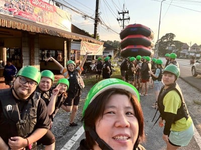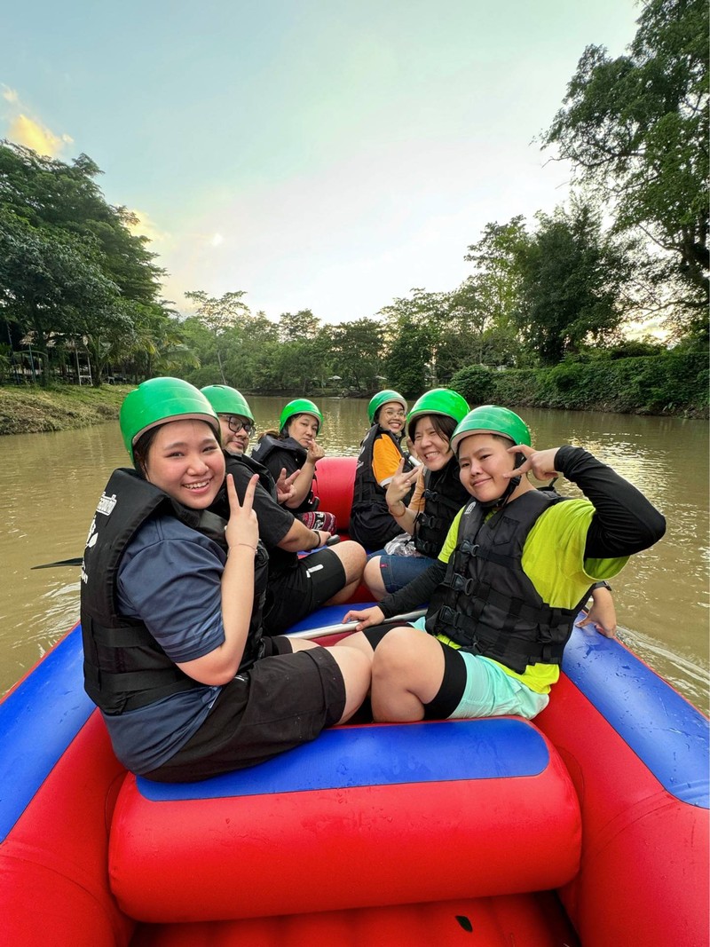 พอดีที่พักโคกัลแถมล่องเรือ 1 ลำ จะจุได้ 7 คน ร้านจะให้ขึ้นรถกระบะ(นั่งไปจุดที่เอาเรือลง คือตรงเชื่อนขุนด่านปราการ วันที่ไปคนเยอะเพราะคนส่วนใหญ่พึ่งจะกลับมาเที่ยวได้หลังจากที่น้ำเยอะ จนล่องแพไม่ได้ บนเรือจะมีไม้พายให้ช่วยกัน แต่จะมีคนคุมท้ายเรือเพื่อช่วยบังคับเรือให้ น้ำวันที่ไปกำลังดีไม่เยอะไป ถ้าวันไหนน้ำเยอะมากๆ อจจะไม่ให้ล่องแก่งเพื่แควาทปลอดภัยดูเพิ่มเติม
