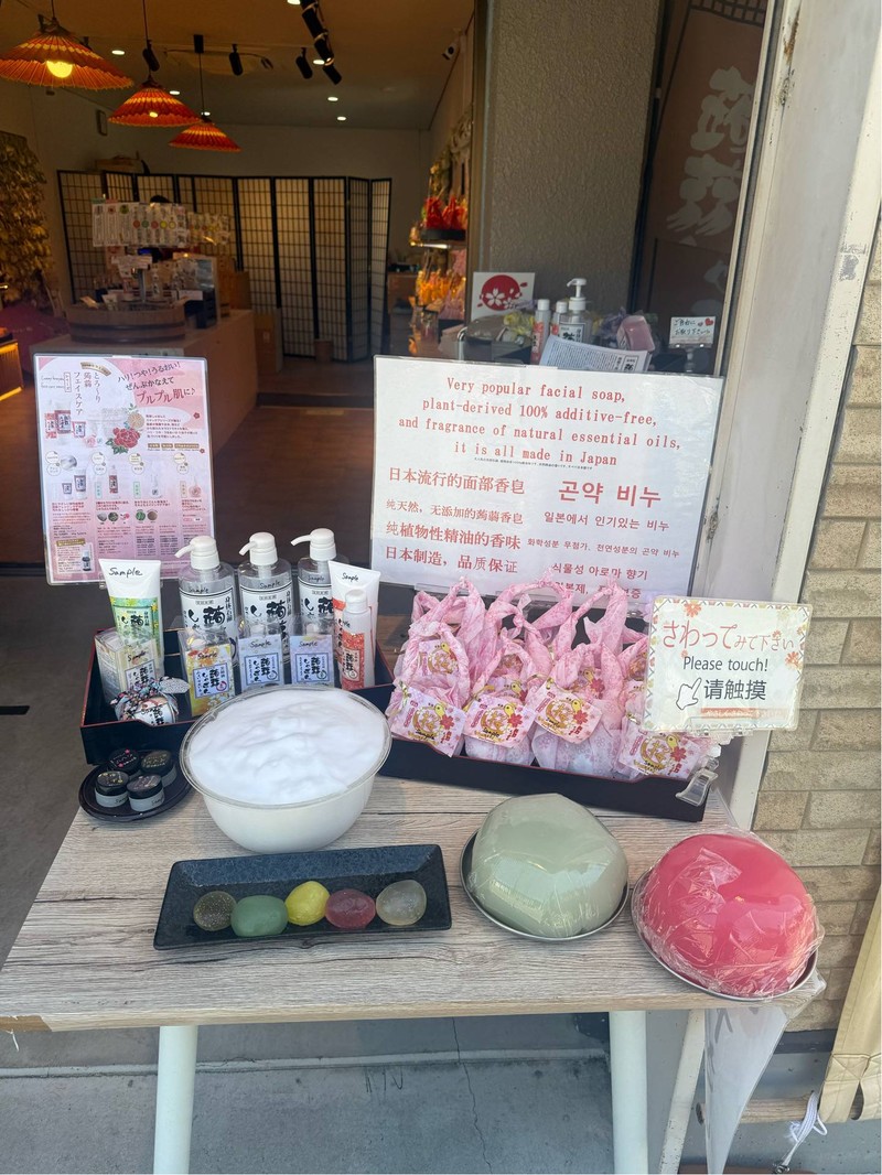 บอกเลยว่าเดินเล่นอยู่ที่ Yunotsubo ก็โดนร้านนี้ตกค่ะ ตัวร้านจะอยู่ที่ถนนคนเดิน จุดเด่นคือมีอ่างล้างมือ พร้อมมีก้อนกลมๆ หลากหลายสีสันวางอยู่ ในร้านนี้เค้าจะขาย Konnyaku Shabon (蒟蒻しゃぼん) หรือ สบู่บุก Konjac Soap ซึ่งที่ร้านเคลมว่าเป็น Organic 100% ทำจากน้ำแร่ของเมืองโออิตะนี้ ไม่มีสารเคมี โดยที่ร้านก็จะให้เราลองล้างมือ 1 ข้าง ด้วยสบู่ของที่ร้าน และเปรียบกับมืออีกข้างที่ไม่ได้ล้าง คือมือนุ่มแบบชั...อ่านต่อ