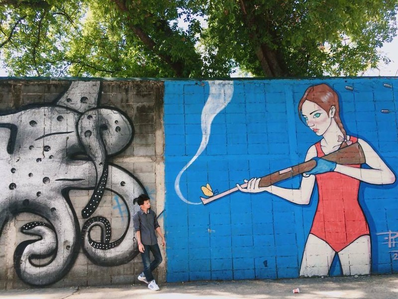 ถ่ายรูปกับงานเพ้นท์แนวอาร์ตๆบนกำแพง จะอยู่ในซอยข้างไปรษณีย์บางรัก เดินเข้าไปเกือบสุดซอย มีผู้คนหมุนเวียนกันมาถ่ายรูปเช็คอินเยอะมาก สถานที่แห่งนี้เป็นที่นิยมถ่ายรูป ถ่ายแบบ และถ่ายโฆษณา มิวสิคMV เหมือนจะไม่มีคนดูเแล เลยดูสกปรกดูเพิ่มเติม