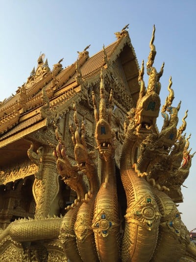 วัดศรีพันต้น ในตัวเมืองน่านค่ะ เมืองน่านเป็นเมืองแห่งวัดจริงๆค่ะ โดยเฉพาะในตัวเมือง วัดเยอะๆ เป็นวัดเก่าแก่คู่บ้านคู่เมืองที่มีประวัติศาตร์อันทรงคุณค่า วัดศรีพันต้นก็เช่นกัน วัดสีทองอร่ามวิจิตรงามศิลป์ สร้างโดยเจ้าเมืองน่าน มีองค์พญานาค 7 เศียรสีทองสวยงามดูเพิ่มเติม