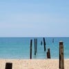 สะพานไม้เก่าที่ทอดยาวไปในทะเล
