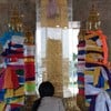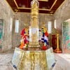 ศาลหลักเมือง จังหวัดสุราษฎร์ธานี สีขาว สวยงาม ก่อนไปไหว้ ก็มีร้านบูชา ดอกไม้ ธูปเทียน และของแก้ต่างๆ มีชุดเล็ก กลาง ใหญ่ แล้วแต่จะสะดวก ด้านหน้ามีร่มให้นั่งไหว้ ตามขั้นตอนต่างๆ มีป้ายบอก ภายในมีความสวยงาม เสาหลักบนยอดมีพระพักตร์พระโพธิสัตว์อวโลกิเตศวรสี่หน้า ทั้งสี่ทิศ รอบสี่ทิศก็มีเสาอีก 4 ต้น ที่ใช้ผูกผ้าแพรดูเพิ่มเติม