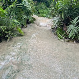 เป็นน้ำตกที่มีความพิเศษแตกต่างจากน้ำตกหรือน้ำพุอื่นๆ เนื่องจากน้ำที่ออกมามีความเป็นหินปูนปนอยู่จึงทำให้หินต่างๆ ที่อยู่ในเส้นทางการไหลของน้ำเกิดหินปูนเกาะและไม่ลื่น ทำให้เราที่เดินฝ่าสายน้ำขึ้นไปเดินได้สะดวก อีกทั้งยังมีสีที่สวยเพราะเกิดจากหินปุนนี้อีกด้วยดูเพิ่มเติม