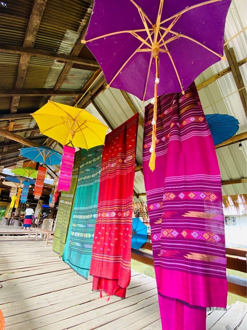ลำดวนผ้าทอ สถานที่ผลิตและจำหน่ายผ้าทอพื้นเมืองแห่งอำเภอปัว น่าน และยังมีอาณาจักรแห่งกาแฟบ้านไทลื้อและข้าวซอยบ้านไทลื้อที่บรรยากาศดี๊ดีอีกด้วย ส่วนหน้าร้านของลำดวนผ้าทอ มีชุดพื้นเมืองสวยๆ สีสันสดใสจำหน่ายมากมาย แต่เราเข้าไปจะมีกลิ่นผ้าดิบคละคลุ้งไปหน่อย เลยได้แต่เลือกสรรยืนมองด้านนอก มานั่งทานในร้านข้าวซอย มองไปที่ใต้ถุนเรือนมีคุณป้านั่งทอผ้าโชว์กันเห็นๆเลยค่าดูเพิ่มเติม