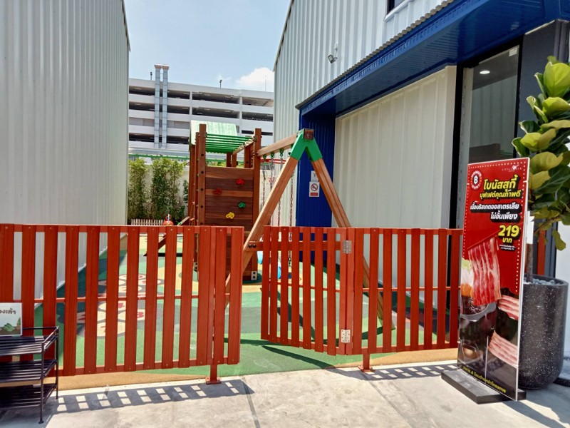 community mall บนถนนรามคำแหง แขวงสะพานสูง เปิดตลอด 24 ชั่วโมง เป็น community mall แนวตั้ง คือตรงเข้าไปอย่างเดียวแล้วก็วนออก มีร้านอาหาร KFC Bonus suk ชาตรามือi ร้านกาแฟ 1:2 ร้านค้าร้านอาหาร คลินิก โรงเรียนเสริมทักษะ เห็นแบ่งหลังคาออกเป็น 3 สี แดง น้ำเงิน เหลือง ไม่รู้แบ่งไว้ทำไม #Wongnai2026ดูเพิ่มเติม