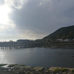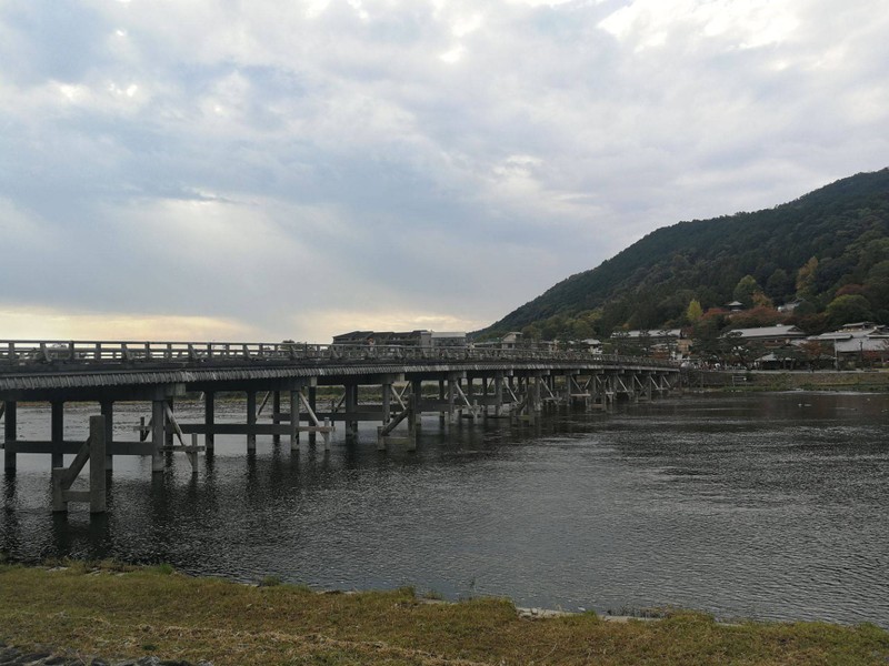 สะพานโทเก็ตสึเคียว (Togetsukyo Bridge) สะพานที่มีชื่อเสียงระดับโลกนี้ข้ามแม่น้ำคัตสึระ ซึ่งจะสวยงามที่สุดในช่วงซากุระบานและใบไม้เปลี่ยนสี แต่เรามาช่วงใบไม้ผลิต่อฤดูร้อน มันก็จะเขียวชอุ่มสดชื่นตาสบายใจไปอีกแบบ จากสถานีรถไฟอาราชิยาม่าเดินไประยะทางไม่ไกล แต่กว่าจะถึงนั้นใช้เวลานานมาก เพราะโดนร้านรวงต่างๆ ฉุดรั้งตลอดทาง แนะนำขนมพื้นเมืองต่างๆ ซื้อมานั่งชิมริมน้ำสุขดีทีเดียวดูเพิ่มเติม