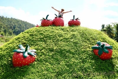 แวะมาถ่ายรูปดอกไม้และผลไม้ที่นี่ค่ะ แต่เรามาช่วงที่สตรอเบอร์รี่ที่ไร่นี้เพิ่งเก็บไป เสียใจเลย เราก็เลยได้เน้นถ่ายรูปดอกไม้เพลินๆแทน ส่วนสตรอเบอร์รี่ พวกเราก็พยายามค้นหา จนถ่ายรูปมาให้เพื่อนๆชมได้นิดนึงค่ะ น้อยมากๆ 55 จบจากไร่ ที่นี่ก็มีร้านแวะช้อปและซื้อเครื่องดื่ม เพิ่มความสดชื่นก่อนไปเที่ยวที่อื่นต่อได้ค่ะ นอกจากนี้ ยังมีบริการที่พักให้เลือกอยู่ 5 หลังกลางสวนสตรอเบอรี่ด้วยค่ะดูเพิ่มเติม