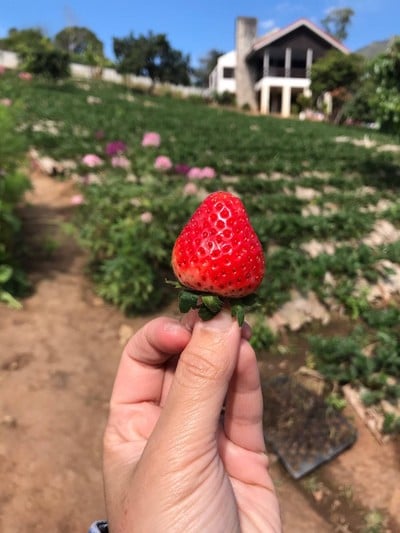 มาถึงเดินเล่นสวนสตอเบอรี่ก่อน สวนนี้ให้เข้าชมฟรี ใครอยากเก็บเอง ทางสวนก็มีให้บริการ ถ้าเก็บได้ชั่งเป็นกิโล แต่เราไม่เก็บ เพราะเดินดูแล้วมีแต่ผลเล็กๆ ยังไม่แดง แต่เราไม่ได้เก็บ ซื้อแบบแดคเลย มีตั้งแต่กล่องละ 150-220 บาท ราคาอาจจะตามฤดูกาล นอกจากสตอเบอรี่สดแล้ว ยังมีแบบแปรรูปที่เป็นอบแห้ง แบบแยม น้ำปั่น สด สะอาด ราคากำลังดีดูเพิ่มเติม