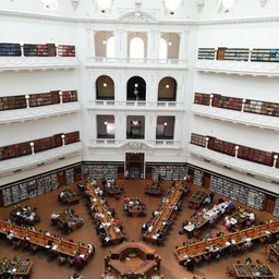 สถานที่ท่องเที่ยวอีกที่นึงในเมือง melbourne ค่ะ อยู่ในเมืองเลย สามารถนั่งบัสหรือเดินมาได้ค่ะ ห้องสมุดยังเป็นสถานที่ที่ใช้งานกันจริงๆนะคะ คนมาอ่านหนังสือกันเต็มเกือบทุกโต๊ะค่ะ เพราะฉะนั้นเวลาเดิน/ถ่ายรูป จะห้ามเปิดแฟรช ห้ามใช้เสียงดังค่ะ สถานที่ทำมาสวยมากจริงๆ มีหลายชั้น สามารถเดินขึ้นมาเพื่อนถ่ายรูปมุมอื่นๆได้ และด้านในมีร้านกาแฟด้วยนะคะ แต่คนค่อนข้างจะเยอะเลยดูเพิ่มเติม
