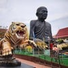 วิวเสือเคียงข้างหลวงปู่องค์ใหญ่ สวยมาก แต่เดี๋ยวก่อน หมูเด้งมายังไงก่อน @วัดกาหลง สมุทรสาคร