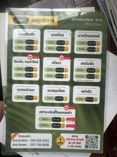 ได้มีโอกาสไปนวดที่ รมย์รวินท์ แผนไทย สาขาสายไหม รู้สึกประทับใจตั้งแต่เข้าร้าน พนักงานต้อนรับดี สุภาพ และให้ข้อมูลบริการอย่างชัดเจน บรรยากาศในร้านสะอาด สงบ เหมาะกับการพักผ่อนจริง ๆ ครั้งนี้เลือกเป็นนวดแผนไทย 1 ชั่วโมง รู้สึกว่าหมอนวดมีประสบการณ์ กดจุดได้ตรงจุดและน้ำหนักมือกำลังดี ไม่เบาไปหรือหนักไป ระหว่างนวดมีสอบถามความรู้สึกเป็นระยะ ทำให้รู้สึกสบายใจและผ่อนคลายมาก โดยรวมแล้วเป็นประสบการณ...อ่านต่อ