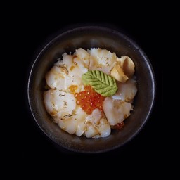 ข้าวหน้ากุ้งอาร์เจนตินา หอยเชลล์ ไข่ปลา