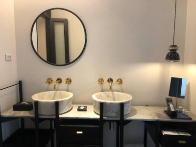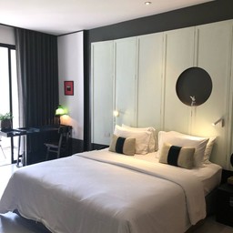 บรรยากาศแรกที่เข้าเช็คอิน สัมผัสได้ถึงความเรียบง่ายสงบ welcome drink เป็นน้ำเฉาก๊วย พนักงานพาเดินเข้าห้องขึ้นบันได เข้าห้องได้กลิ่นอารมณ์อโรม่าร้านนวด แล้วแต่คนชอบ ส่วนตัวคิดว่าห้องนอนไม่ควรกลิ่นแรงมาก สับสนระหว่างหอมตะไคร้หรือกลิ่นอับ นอนเล่นสักพักจามไม่หยุด น่าจะมีฝุ่น เศร้าเลย เปิดระเบียงไปสูดอากาศพักใหญ่ก่อนปรับตัวให้ชิน โดยรวมตกแต่งโอเคดูเพิ่มเติม