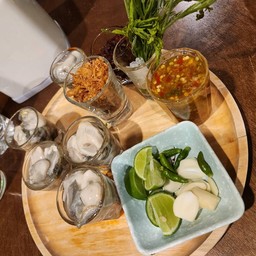 33% ของรีวิวบอกว่าได้เข้าพักแบบ ครอบครัวเรือนไทยวิจิตรา ร้านอาหารไทย เลียบด่วน ประดิษฐ์มนูธรรม25 อาหารไทย ฟิวชันหลากเมนู เกี๊ยวกรอบเมี่ยงแซลมอน จานนี้ดี รสชาติกลมกล่อม เสริฟแบบเมี่ยง แซลมอนหั่นเต๋า ชอบ ขาหมูเยอรมัน ขาหมูทอดได้หนังกรอบ อร่อย กุ้งอบวุ้นเส้น ใช้ได้ กุ้งแม่น้ำขนาดกลาง หอยนางรม เสริฟพร้อมเครื่องเคียง หอมเจียว กระถิน มาครบ หมูหมักผัดพริกเกลือ หมูนุ่ม ผัดพริกเกลือได้หอม ข้าวกระเพราปูก้อน กระเพราผัดใช้ได้ แต่เนื้อปูก้อน ไ...อ่านต่อ