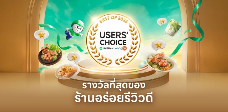 LINE MAN Wongnai Users' Choice Best of 2026 การันตีจากรีวิวจริงของคนไทยทั่วประเทศกว่า 26 ล้านคน คัดมาแล้วว่าเป็นร้านที่สุดแห่งปี !