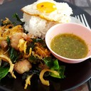 ร้านตามสั่งเล็กๆ แต่ทำออกมาคุณภาพเกินราคาและบรรยากาศร้านจริงๆหาร้านอาหารใกล้ๆ ที่พัก เดินผ่านร้านนี้ตั้งแต่วันก่อน แต่ดูภายนอกไม่ค่อยน่าทาน น่านั่งเท่าไหร่ วันนี้ตัดสินใจลองเข้ามาทานดู ร้านนี้มีอะไรน่าสนใจแฮะ เป็นร้านห้องแถว แต่เมนูแนะนำของร้านนี้ถือว่าไม่ธรรมดา และราคาถูก อาทิ ข้าวหมูเกาหลี หมูทอดสมุนไพร ไส้ทอดสมุนไพร ปลาหมึกผัดไข่เค็ม ปลาสามรส ห้อหมกปลาทะเล ปีกไก่เหล้าแดง กระเพราซี่โครง ซี่โครงสามรส ที่พูดมาทั้งหมดนี่เป็นแบบราดข้าวทั้งหมด และราคาเพียง 30-40 บาทเท่านั้น
