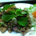 ~ ลาบเป็ด เนื้อเป็ดเสิร์ฟเป็นชิ้นไม่ได้สับ เหนียวเล็กน้อย รสชาติดี