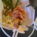อร่อย รสชาติดี มีสตอรี่ แต่ให้น้อยมากมาตั้งบูธขายที่งาน Flex Aqua Fest ที่พัทยา เห็นลีลาการผัดเลยอยากลองชิม เริ่มต้น ผัดไทยไฟทะลุ 130 บาท ในใจก็คิดว่าราคาแรงอยู่ พอใส่กล่องยื่นให้ ถึงกับต้องเขี่ยหาเส้น 😂 ให้เส้นน้อยม๊ากกกก แต่อร่อย หอมกระทะ ไม่เห็นเนื้อสัตว์นะ น่าจะมีแต่เต้าหู้