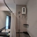 ห้องน้ำ ไม่กว้างมากนัก แบ่งส่วนแห้ง เปียก ด้วยผ้าม่าน แต่สุดท้ายก็ยังมีน้ำก็กระเซ็นลอดตรงด้านล่างออกมาบ้าง
