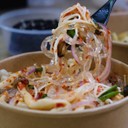 ส่วนอีกชาม เป็นยำเห็ดลูกชิ้นเห็ดหอม ปริมาณคือให้เยอะมาก จานนี้เบือกระดับความเผ็ดและเลือกใส่หรือไม่ใส่ปลาร้าได้