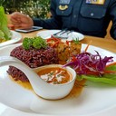 สลัดเพื่อสุขภาพจานโตเน้นว่าจานใหญ่มากๆๆๆค่ะ สลัดอกไก่ 119฿ อาจมีผักไม่หลากหลายชนิดแต่ปริมาณคือเยอะมากกก ต้องห่อกลับ ผักสดกรอบดี อกไก่ย่างมาโอเค น้ำสลัดใช้ได้ ส่วนข้าวไก่ย่างจิ้มแจ่วกับข้าวผัดอเมริกันก็รสชาติดีผ่านมาตรฐานทุกเมนู มาฝากท้องได้ค่ะ