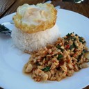 -ข้าวกะเพราไก่ไข่ดาว ราคา 50 บาท เผ็ดน้อย รสกลาง