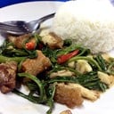 2. ข้าวผักบุ้งหมูกรอบ ข้าวสวย ราดด้วยผัดผักบุ้งหมูกรอบ รสชาติใช้ได้ หมูกรอบไม่เหนียว เข้ากันกับผักบุ้ง