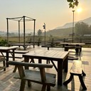 ที่รีสอร์ทและคาเฟ่มีน้องหมา 6 ตัว วิ่งเล่นอยู่รอบๆ เล่นกับน้องๆได้นะ