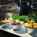 ของกินตลาดนี้เยอะมากค่ะ ดูน่าทานทั้งนั้น ทั้ง ปิ้งย่าง สเต๊กจานร้อน ไก่ย่าง เนื้อย่าง สารพัดของทอด สารพัดชานม ไส้กรอก ทาโกะยากิ ขาหมู ซีฟู้ด โมจิ .. สารพัดสารเพจริงๆ ค่ะ