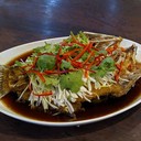 -กั้งกระดานนึ่ง กั้งสดๆจากตู้หน้าร้าน ตัวใหญ่ นึ่งออกมากำลังดี เนื้อแน่นๆหวาน