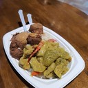 อาหารฮาลาล icon siamร้านอาหารฮาลาล อยู่ชั้น g ห้าง icon siam ร้านค่อนข้างใหญ่มีที่นั่งทานในร้าน อาหารเป็นข้าวแกงตักๆมีหลายเมนูให้เลือก กับข้าว2อย่างราคา 50-60฿ ปริมาณข้าวเยอะแต่ข้าวแห้งแข็ง เลือกไข่พะโล้กับเขียวหวานไก่ฟักมา พะโล้น้ำใสๆรสหวานจางๆไม่ค่อยมีรสชาติ แกงเขียวหวานมีแต่รสเผ็ดนำ ไม่ค่อยมีเนื้อไก่มาเท่าไหร่ อาหารไม่ร้อนทั้งข้าวและกับข้าว