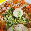 - เส้นเล็กต้มยำ ราคา 30 บาท เส้นเหนียวหนึบปริมาณค่อนข้างเยอะ ปรุงรสชาติมาให้เผ็ดหวาน ใส่ถั่วลิสง หมูสับ หมูแดง ปลาเส้นและลูกชิ้นหมู