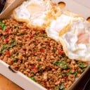 - จอมพลัง- กะเพราอกไก่ ข้าวโปะด้วยผัดกะเพราที่ใช้อกไก่อย่างดี ให้ใบกะเพราเยอะ พร้อมไข่ดาวไข่แดงเยิ้มๆ แต่กรอบนอก เหมาะทานสามคน สามารถเลือกระดับความเผ็ดได้
