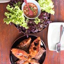 •ปลานิลทอด+แจ่วมะนาวแซบ 299฿ ปลาหั่นมาให้เป็นชิ้นใหญ่ๆและทอดได้กรอบดีมากๆ จุดเด่นอยู่ที่แจ่วของเค้ารสชาติดีทีเดียว น้ำจิ้มแจ่วหอมข้าวคั่วมาก แถมหั่นมะนาวเป็นชิ้นเล็กๆลงมาผสมกับหัวหอม พริก รสชาติออกหวานนิดเผ็ดหน่อยทานกับปลาแล้วอร่อยลงตัวดีมาก