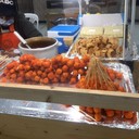 ร้านขายลูกชิ้นหมูชุบแป้งทอด สีส้มน่าทาน แบบไม่ชุบแป้งก็มีนะ ไม้ละ3บาท เท่านั้นเอง และยังมีจ๊อปูทอดรสเด็ด ชุดละ 50บาท