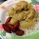 สำหรับในวันนี้ผมสั่ง ข้าวราดแกงเขียวหวานลูกชิ้นปลากราย+กุนเชียงมากิน