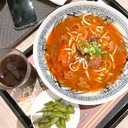 เส้นนุ่ม คล้ายอุด้งแต่ไม่ใช่ มีมะเขือเทศเปื่อยๆ และเนื้อชิ้นๆ