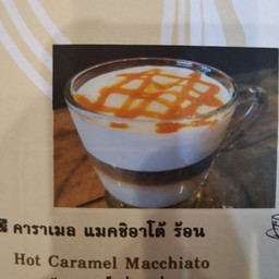 กาแฟเอสเพรสโซ / นมสดร้อน / น้ำเชื่อมกลิ่นคาราเมล / ฟองนม / ผงอบเชย