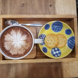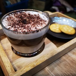 กาแฟเอสเพรสโซ / โกโก้ / น้ำเชื่อมกลิ่นวานิลลา / นมสดร้อน / ฟองนม / ผงโกโก้