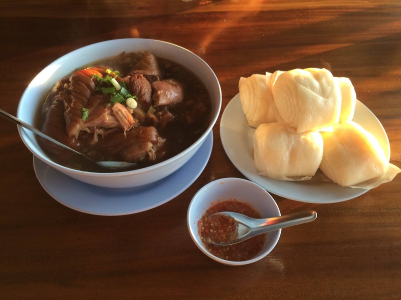 20 กม. จากตีนดอย ไต่รถขึ้นมาทางผาตั้ง กว่าจะถึงก็ทนเวียนหัวกันหน่อยนะครับ เปิดหน้าต่างรับลมคอยบรรเทาเอาละกัน~ ร้านชาวบ้านครับ แนวๆยูนาน ใครพูดจีนได้พูดใส่เจ้าของร้านเลยครับ กำเมืองเหนือก็ได้เน้อ~ อันที่จริงเฮียแกพูดไทยได้นะ ถึงร้านก็อบอุ่นร่างกายด้วย 'ชาเขา' กันก่อนนะครับ หาโต๊ะนั่งก็สั่ง ขาหมูหมั่นโถวได้เลย อร่อยชัวร์เซเว่นไม่มีขาย!! อาหารจานอื่นก็อร่อยครับ ถ้าทานขาหมูกลัวเลี่ยนก็สั่งซุปเปร...อ่านต่อ