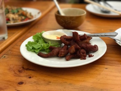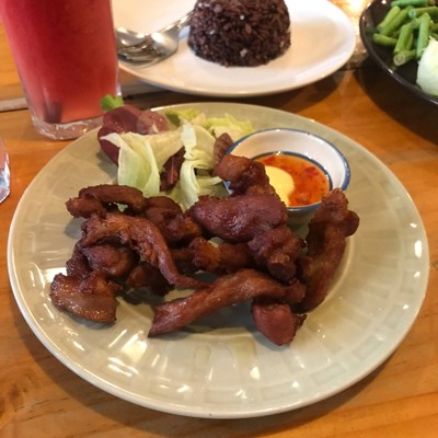 ร้านนี้ ไปถึง มีแต่ฝรั่งนั่งทานน่ะ แทบไม่มีคนไทย แต่อย่าได้แคร์จ้า ลองเข้าไปนั่ง ทานดู ในใบเมนูมีทั้งอาหารฝรั่งและอาหารไทย เราทานอาหารไทย - เต้าเจี้ยวหลนหมูสับ รสชาติดี ผักสดจุใจ - เนื้อแดดเดียว แนะนำเลย อร่อยมาก ๆ ต้องสั่ง - ปลาผัดไรซักอย่าง จำชื่อไม่ได้ ทานกับข้าว ฟิน - ข้าวเหนียวมะม่วง รสชาติดี บางร้าน ยังรู้สึก ว่า.. บางเมนูอร่อย บางเมนูไม่อร่อยแต่ร้านนี้ เรารู้สึกว่า.. "ทุกเมนูที่สั่ง...อ่านต่อ